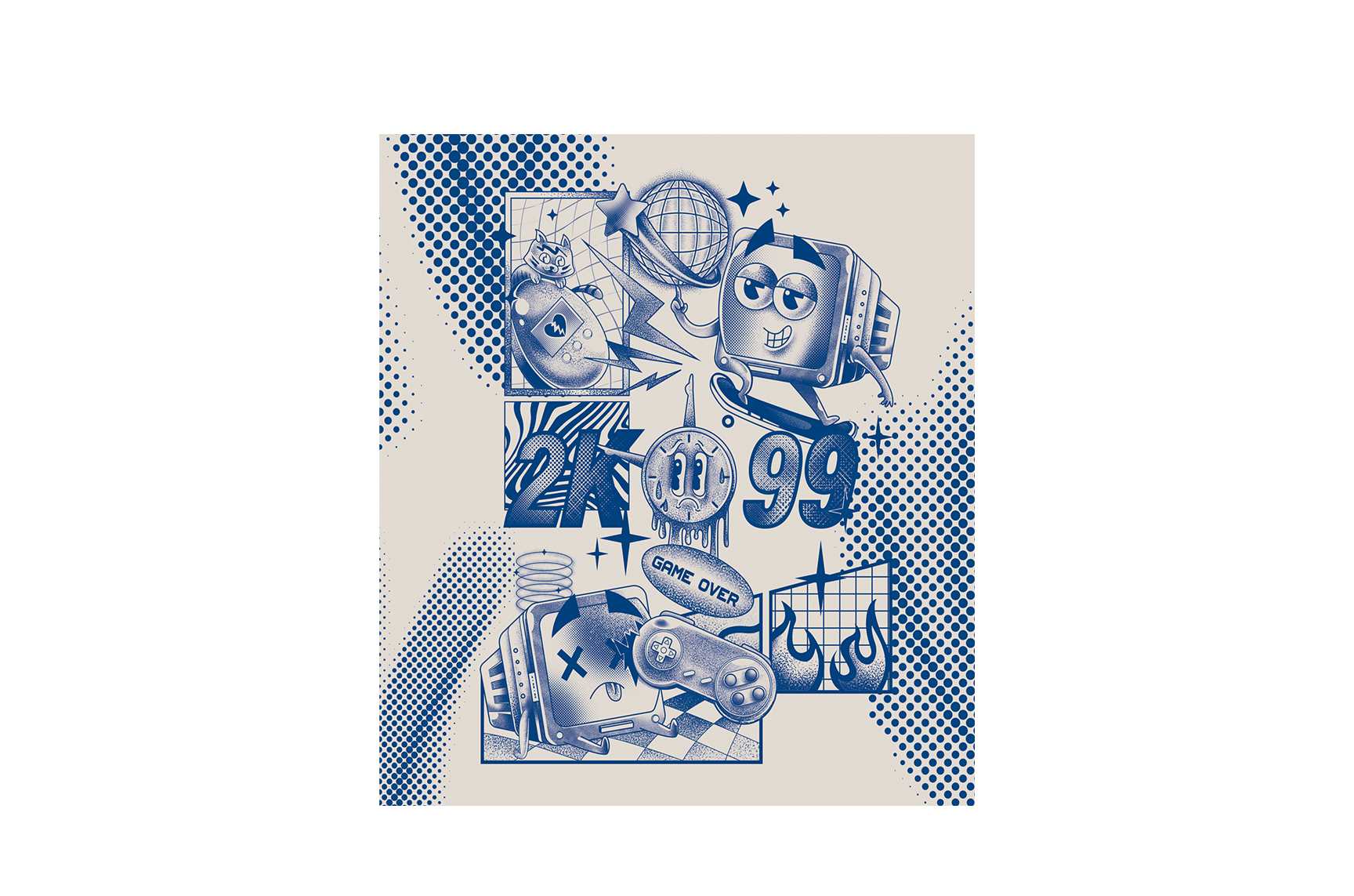 The collection "Fearful Clock" is inspired by the theme Y2K. With a touch of nostalgia, it features the arrival of the year 2000 amidst the pops and fizz of Y2K fashion. Haunted by the approaching millennium, a century-old computer, once a joyful observer of life, faces its own existential dread as the year 2000 looms.